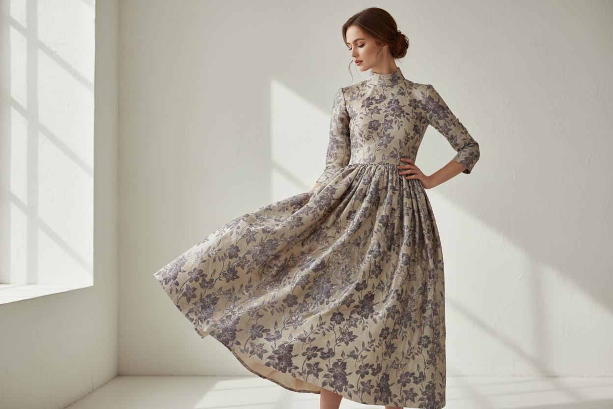 بفضل ألوانها الأنيقة ونسيجها الجاكار ثلاثي الأبعاد، يُعد هذا القماش مثاليًا للديكورات المنزلية الفاخرة والملابس الراقية. كل كرمة وبتلة منسوجة بدقة متناهية في بنية القماش، مما يضمن وضوحًا دائمًا للنمط وعمقًا بصريًا.