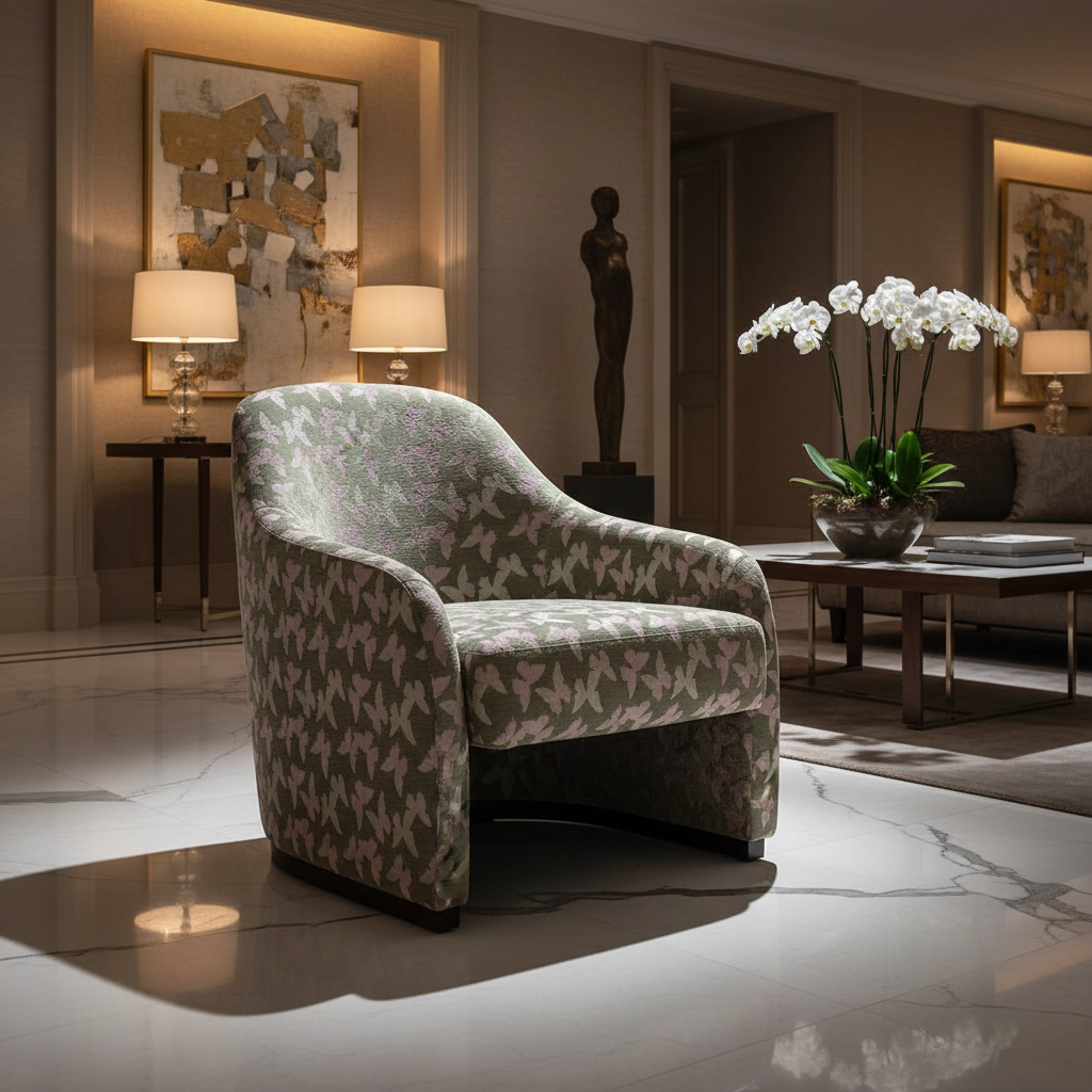 Жаккардовая синельная ткань для обивки мебели и легких предметов роскоши.